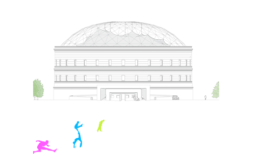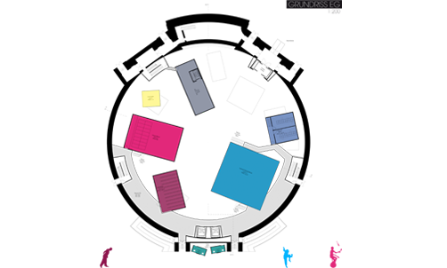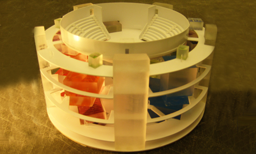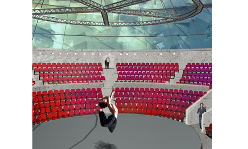 Der Circus zieht in das Gasometer in der Fichtestrasse in Berlin ein und spannt sein Zelt über der Stadt auf. Einzelne Kuben, abgeleitet von den Wagen der Wandercircusse, nehmen alle Funktionen wie Proben, Maske und Pausen auf.