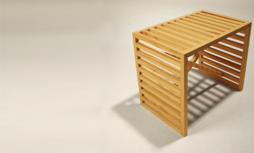 Der Lattenhocker legt sich wie ein Band in den Raum und erhält somit keine direkte Ausrichtung.